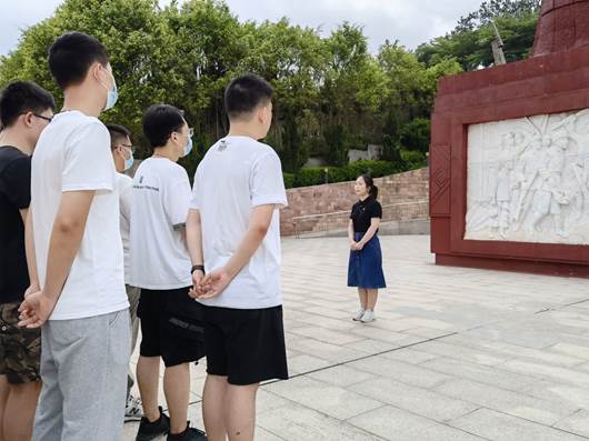 本次党日活动的第一站为广西壮族自治区烈士陵园。在陵园内,全体党员向在广西发展过程中英勇献身的先辈们和以袁隆平、吴孟超两位院士为代表的为国家发展做出巨大贡献的已逝前辈们默哀、鞠躬和敬献鲜花。党支部书记李娟老师现场上党课,为大家简单介绍埋葬在此的先辈们的事迹。